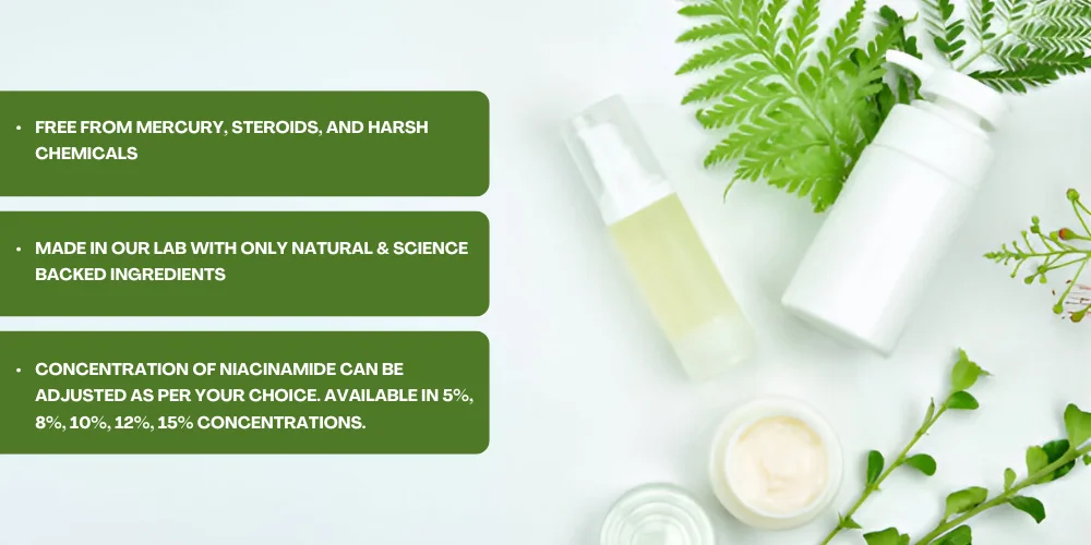 Reviticals offers a *custom formulation option*, allowing you to choose the Niacinamide strength based on your skin’s needs. You can select a lower percentage for sensitive skin or a higher one for stronger brightening and oil control.