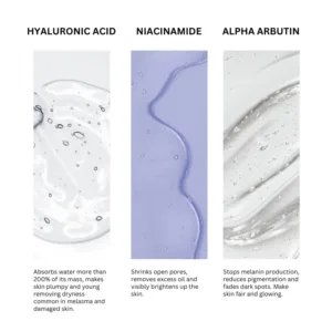 With a stabilized formula, it penetrates deep into the skin to reduce excess oil, sun tanning, uneven skin tone and dryness. As a result, your skin looks brighter, more even-toned, and hydrated, with a smooth, refined texture. The highest concentration of active skin-brightening ingredients with a stabilized formulation makes it one of the best pigmentation serums in Pakistan. The serum is gentle enough to use for all skin types, including acne-prone and sensitive skin.